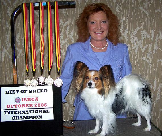 | Jc's Jezebel TC894039 10-89 White Black & Tan | CH Moira's Spot Of Gold TC650560 09-88 WHITE & SABLE |